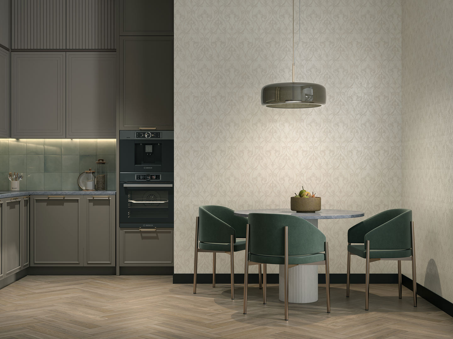 Обои виниловые на флизелиновой основе Дамаск мотив, бежевый